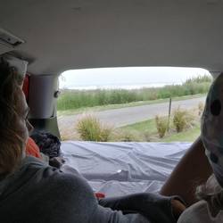 Evi freut sich nun erstmal über einem Spielplatz wieder inklusive Trampolin, wir kochen und essen zusammen in der Küche endlich ordentliche Nudeln mit Tomatensoße, puzzeln noch etwas zusammen im Aufenthaltsraum und lassen uns von neuseeländischem TV berieseln nebenbei. Ab geht's dann bei Nieselwetter ins Bette, mit Hörspiel von Papi. Und das direkt mit dem Blick aufs Meer. 🌊Read more