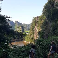 Eeeeeigentlich war der Plan, bevor wir zu unserem nächsten Ziel weiterreisen, nochmals zu Tu zu unserem übrigen Gepäck zu laufen, um nochmal ein zwei Sachen für den Rest der Zeit in Vietnam aufzurüsten. Dieser Plan wurde aber bock- und launemäßig spontan überworfen. Der nächste Zug nach Nin Binh fährt bereits 6:10 Uhr ab - für diesen buchen wir uns auch spontan ein. Für weitere 2h Zugfahrt bezahlen wir 5,80€ p.P. Nach besagten, kurzem Einkauf und Toilettengang geht unsere Zugreise auch schon direkt weiter. Diese nutzen wir zum weiteren Dösen, ein bisschen nochmal Schlafen, etwas Schnabbeln und der sich verändernden Umgebung aus dem Fenster raus zuschauen - zack schon sind wir da. Unser nächstes Reiseziel für die nächsten Tage heißt: " Nin Binh"