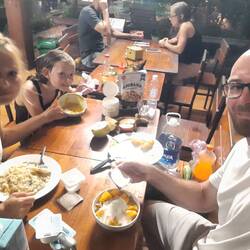 Weiter geht's an den Verkaufsständen in unserem Ort, hier decken wir uns nochmal mit einem 6l Kanister Wasser ein, diversem Obst, Milch und Brötchen- damit sind wir für den morgigen Tag gut ausgerüstet.