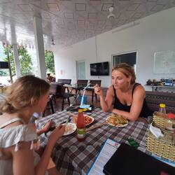 Wir genießen ein letztes Frühstück hier, ich schmiere Brötchen für unterwegs, Benny bezahlt unseren Aufenthalt hier mit Karte- was glücklicher Weise und warum auch immer funktioniert mit 3% zusätzlichen Transfergebühren, Evi verabschiedet sich von den großen und kleinen Tieren, wir packen unsere Rucksäcke.. Und gehen doch nochmal in den Pool, bis wir abgeholt werden😅 #Hitzekompensieren