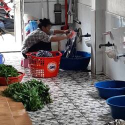 Im selben Raum wurde nebenan die Wäsche per Hand und Bürste geschrubbt! Große Handtücher und sogar Bettwäsche. Bei der anstrengend Handarbeit hab ich auch nicht schlecht gestaunt...