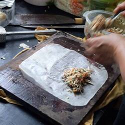 - für Frühlingsrollen wird Reispapier genutzt, dabei gibt es unterschiedliche Sorten für frische Frühlingsrollen und Gebackene