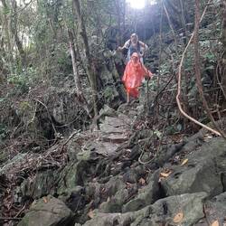 Der Weg wurde dann immer unhandsamer, wir gingen tatsächlich über ins Steine und Felsen besteigen, bei schwülen 30 Grad .. noch nie im Leben war mein Poncho sooo triefend nass von innen, und hingegen von außen trocken - bis auf die Schweißperlen, die von meiner Stirn auf ihn drauf tropften🤣