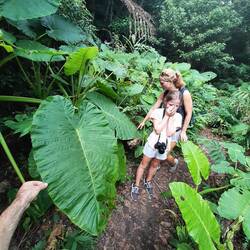 Vor allem Evelin ekelt sich sehr über Mücken, fliegenden Käfer.. Oder die Pflanzen, die auf immer dichter werdenden Wegen an der Haut entlang streifen. Manchmal fliegen richtig laute, große Brummer gefühlt direkt ins Ohr rein. Evi ekelt sich allmählich so sehr, dass es eher in panische Angst vor jedem Geräusch und jeder Berührung ausartet und die Schutz sucht in unserer Nähe, direkt bei uns am Körper klebt... Meine rettende Idee war dann, dass wir einfach die Regenponchos überziehen, damit sich nichts auf uns platziert und uns nichts streift: schlagartig war Evi's Panik weg und der Frieden kehrte wieder ein.