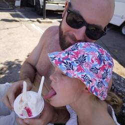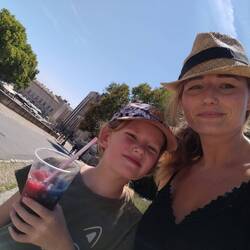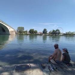 Zurück am Platz erstmal fix abduschen und chillen, bissl Abendbrot essen. Evi nochmal ins Wasser zum Fluss - Sonnenuntergangseinheit bis Sonne weg ist. Eine gute Stunde waren benny und evi im Wasser, evi sehr viel geschwommen und beide zusammen rumgespielt, Mama auf stand-up gechillt. Zurück ordentlich duschen, oben am Restaurant die Route geplant für Abreise morgen: über avingon geht's ab ins luberon-Naturschutzgebiet. Ohne Maut etwa 2,5h fahrt insgesamt. Einkaufen müssen wir dann unbedingt auch, unsere Vorräte reichen hoffentlich noch irgendwie fürs Frühstück, 2x Baguette vorbestellt für morgen.