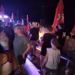 Am. Abend war die Musik im Camp so laut, dass wir mal schauen gegangen sind: airhockey gespielt, Motorrad gefahren, dart gespielt, evi total happy und auch wir hatten unseren Spaß. Zusammen im Bett noch Geschichte gelesen und geschlafen.Read more