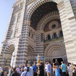 Pool, mittag für evi, erst 13 Uhr auschecken aus campingplatz und sightseeing in Marseille steht an. Pünktlich checken wir aus und düsen los. Wilma hat ganz schön zu kämpfen bei den langgezogenen Hügeln. Schließlich sind wir kurz vor Ziel, sind dann plötzlich doch irgendwie falsch abgebogen direkt in einen Tunnel - der uns direkt dahin führte wo wir gerade mit wohnwagen nicht sein wollten: direkt in der Innenstadt von Marseille, mehr mittem drin hätte es nicht sein können. Fußgänger, Rollerfahrer, city Rollerfahrer und wer noch alles macht hier was er will. Nach 20 Minuten Umweg fahren sind wir schließlich am geplanten Parkplatz. Von dort aus starten wir zu Fuß zum Bus zur Metro zurück in die Stadt. Dazu haben wir ein 24h XL Ticket für uns drei geholt, für jeden macht das 5,20€. Das hatte benny ganz praktisch vorab recherchiert. Von der Nutzung der Fahrräder wird aufgrund der Hügel eher abgeraten. Wie sich rausstellt:zurecht. Gegen 15 Uhr sind wir tatsächlich da wo wir sein wollten, nämlich an der ersten Attraktion: altstadthafen. Zu Fuß durch die alte Innenstadt. Landen schließlich in der ersten Kirche, pünktlich zur Zeremonie. Heute ist Nationalfeiertag. Viele Geschäfte haben daher zu. Somit wird es wieder mal schwierig Schuhe für Evelin zu kaufen. In den Bus als nächstes weiter hoch zur nächsten Kirche. Leider treffen wir dort kurz nach 18 Uhr erst ein und diese wird pünktlich geschlossen. Vor allem benny ärgert es, nicht eintreten zu können. Wir genießen trotzdem die Aussicht über ganz Marseille und das Meer. Weiter geht's in die Innenstadt zum Hafen zurück, der anscheinend dreh und Angelpunkt des öffentlichen Verkehrs hier ist. Evi hat Hunger. Wir suchen und finden einen kabab-laden. Mit dem Döner wie wir ihn kennen hat das leider nichts zu tun, schmeckte solala, macht satt. Weiter geht's mit der straßenbahn zum Park, tolle riesige Brunnenanlage, leider nicht in Betrieb vermutlich aufgrund der dürre. Hier genießen wir die letzte Stunde, bevor es weiter geht zurück zum Auto. Evi muss noch auf Toilette, finden eine kostenlose öffentliche, automatische, die uns eine Weile beschäftigt. Da wir mit dieser Aktion den letzten Bus verpassen, weil mittlerweile der Nachtverkehr hier waltet, schmieden wir Plan B, fahren noch eine Station weiter mit der Metro und laufen noch restliche 15 Minuten zum Auto. Dort finalisieren wir auch den Plan für heute und morgen: wir bleiben die Nacht hier, nutzen den Morgen erneut für die Schuhkaufaktion und einen erneuten Versuch die Kirche zu besichtigen und fahren danach weiter zum Campingplatz, der uns hoffentlich aufnimmt. Eigentlich sollten wir dort schon ab früh 8 Uhr anfragen, schauen und hoffen wir mal das wir Glück haben.Read more