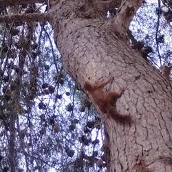 Evelin startet den Tag mit Wecker zur Eichhörnchen Beobachtung. Sehr erfolgreich, sie jagen sich durch die kante.