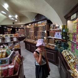 "Pampelmuse Rose" in hellrosa und "Fleur d'Orange" in weiß. Alles sehr lecker und noch nie vorher gegessen, schmecken etwas wie Parfum. In Souvenirläden gewesen: Seife, Konfitüren, Käse und Riesennougat, backener Brot in verschiedenen Sorten.