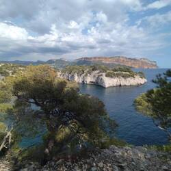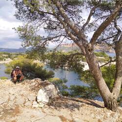 Die Nacht hat es ordentlich geregnet, wir ahnen deshalb, dass die rote Flagge erneut gehisst ist und das Baden verboten. Die Wettervorhersage für heute kündigt wiedermal teils Regen und Gewitter an, über uns strahlt jedoch die Sonne und es ist heiß. Für heute setzen wir also eine Wanderung an zu zwei der nahegelegenen Calanques: du port und du pin. Die, die vor allem so sehenswert ist, ist die calanque d'en vau ("im Tal"), allerdings wäre die Tour nochmal insgesamt über 3 Stunden länger bergauf-und ab, das wäre für evi leider doch zu hart.