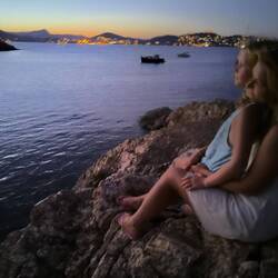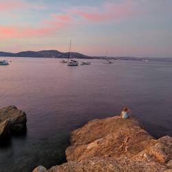 Früh anhalten auf Markt, Marathon für evi steht bevor: eine Tour: 8km zum Hafen, dann 20 min fährtfahrt nach Porquerolles, 1h 15min wandern, schwarzer Sandstrand mit bunten Steinen, direkt 100m gegenüber heller Sandstrand bei badewannenklarem Wasser. Rückwanderung zum nächsten Strand. Ab zum Hafen und heim, schnell noch dem Sonnenuntergang entgegengeflitzt.Read more