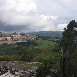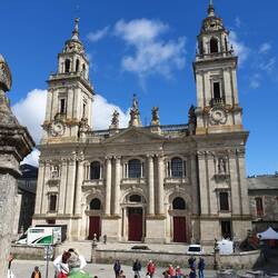 A long walk interrupted by frequent and heavy showers but relatively short in duration. Mostly track and roadside across the Lugo plain with none of the huge hills we have been scaling for the last 7Meer informatie