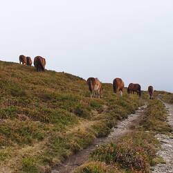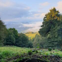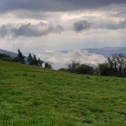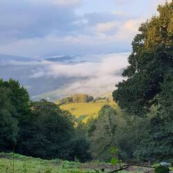 Beautiful climb out of the valley this morning; an increase in elevation of 450m. Mist and quiet vistas, and the ever present distant company of baying dogs and hunters in high vis jackets. Sunday inMeer informatie