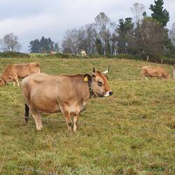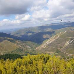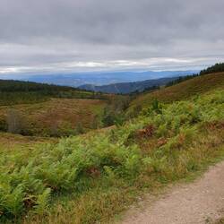 Crossed into Galicia below some wind turbines which were making the noise of howling jets because the wind was so strong. The climb of 600m to 1100m is quite gradual to start with but turns into aMeer informatie