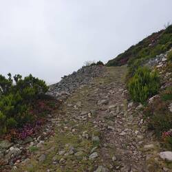 Down, down always down; 800m descending in 7km. The weather is damp and the mist is thick and we are walking down hill on scree paths and wet natural slabs of slate. The consequence was inevitable andMeer informatie