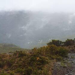Down, down always down; 800m descending in 7km. The weather is damp and the mist is thick and we are walking down hill on scree paths and wet natural slabs of slate. The consequence was inevitable andBaca lagi
