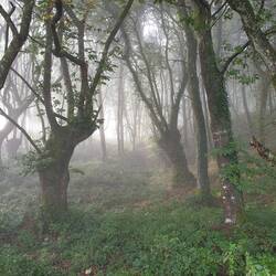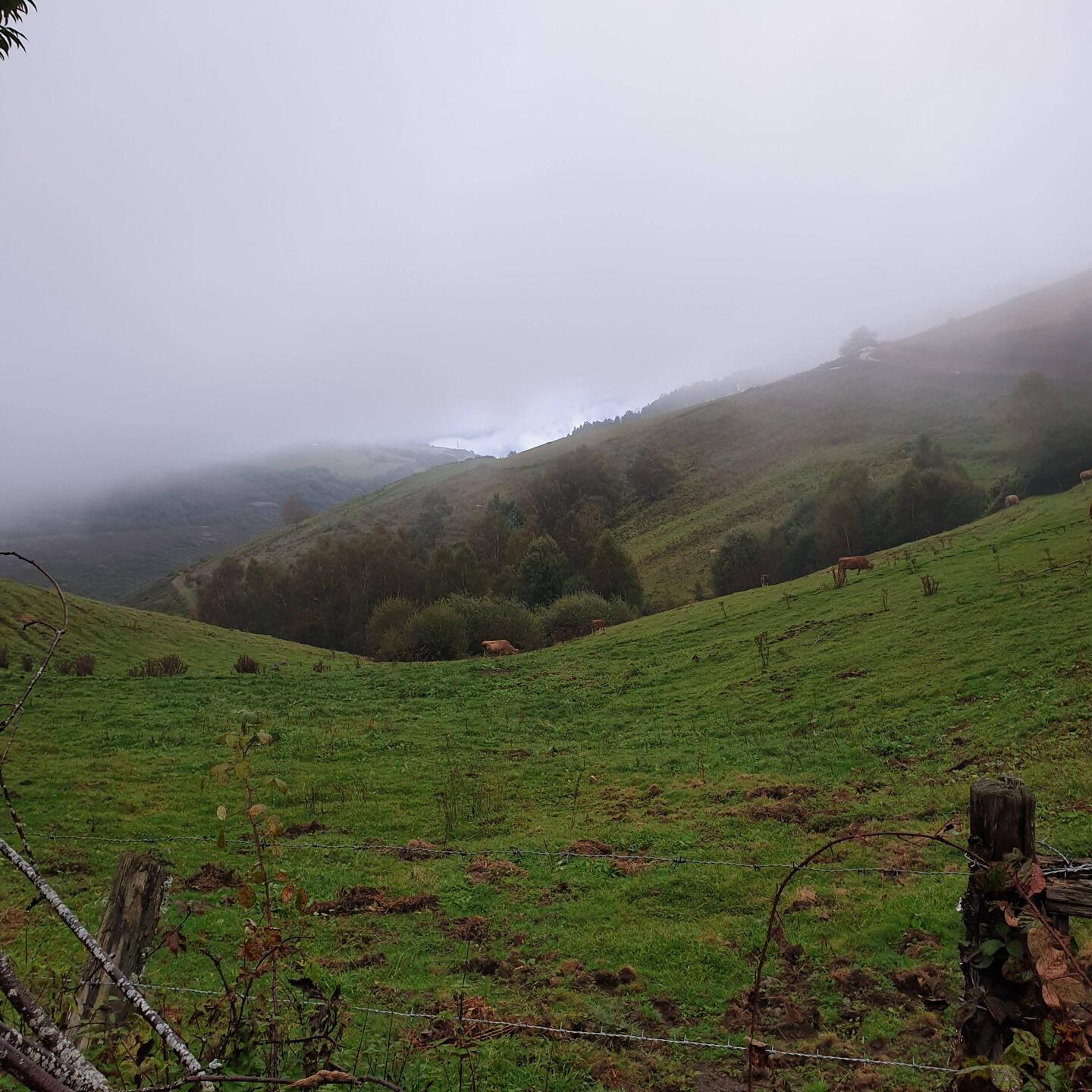 Beautiful climb out of the valley this morning; an increase in elevation of 450m. Mist and quiet vistas, and the ever present distant company of baying dogs and hunters in high vis jackets. Sunday inBaca lagi