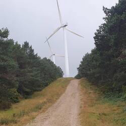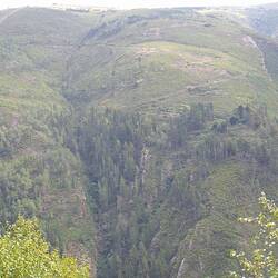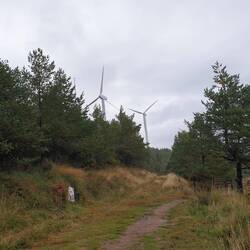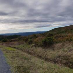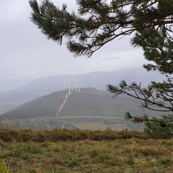 Crossed into Galicia below some wind turbines which were making the noise of howling jets because the wind was so strong. The climb of 600m to 1100m is quite gradual to start with but turns into aBaca lagi
