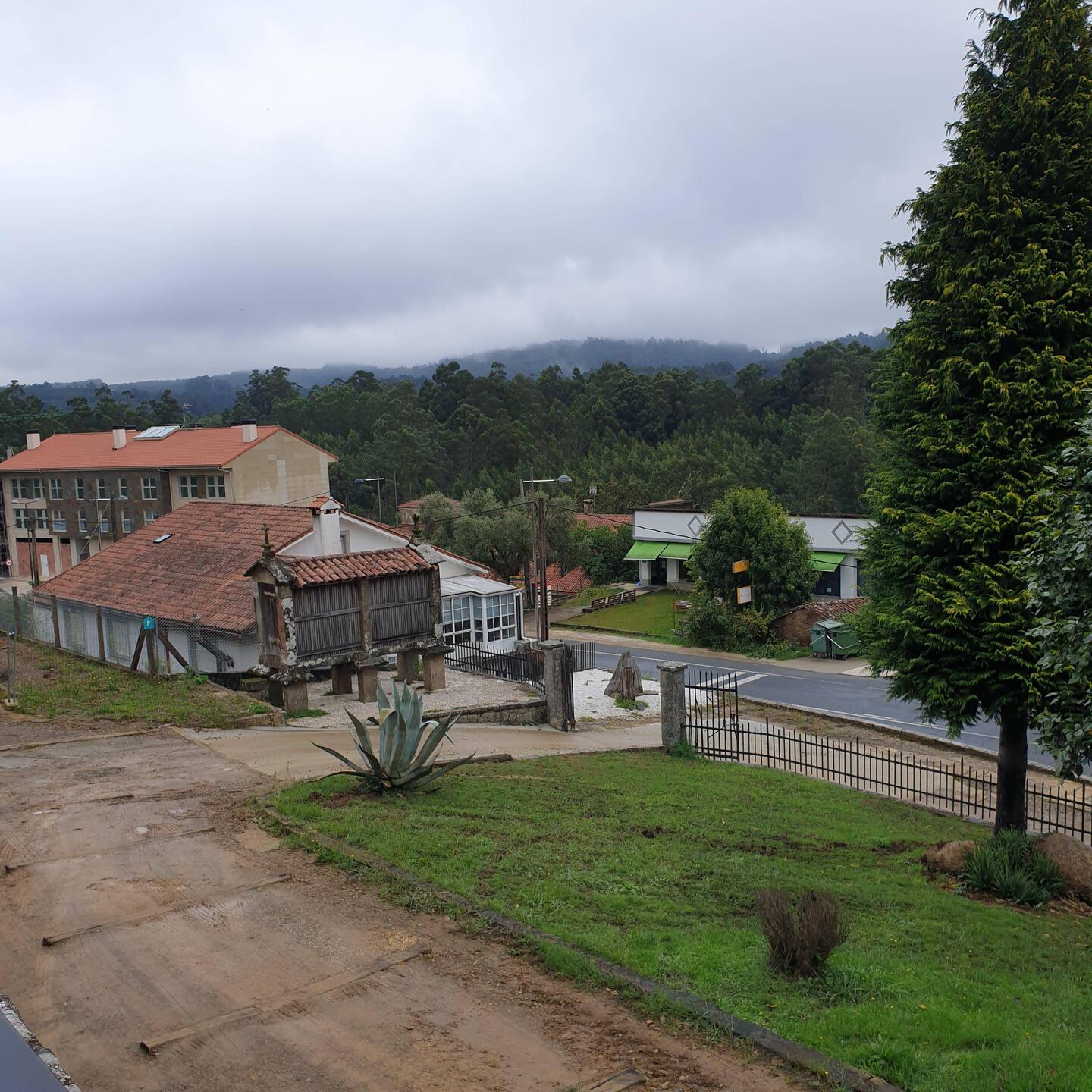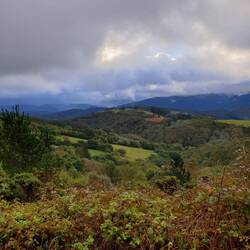 A long walk interrupted by frequent and heavy showers but relatively short in duration. Mostly track and roadside across the Lugo plain with none of the huge hills we have been scaling for the last 7Baca lagi