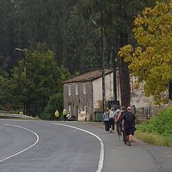 Left Lugo at 07.30 and walked in thick wet mist until the Sun broke through at 11.00. Mainly road walking today but some pretty countryside once the mist cleared. Arrived at the albergue at 13.30Baca lagi