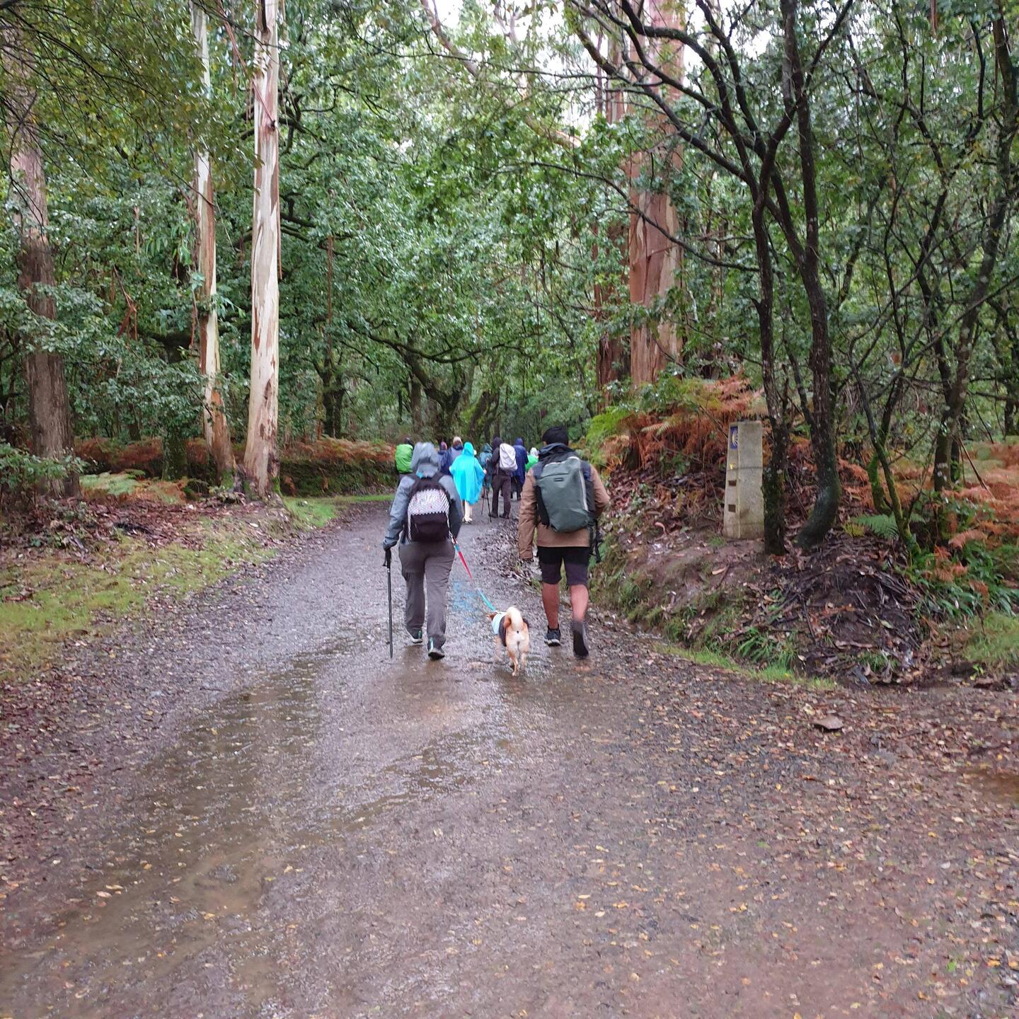 What a miserable final mornings walk into Santiago. I heard the rain drumming hard on the albergue roof as soon as I woke up and knew the walk would be wet and muddy. It rained from the start at 08.35Baca lagi