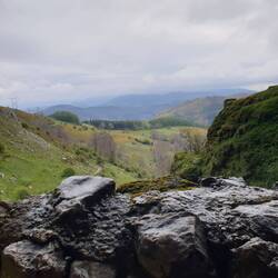 Coffee stop half way to tonight's albergue at Zegama. Snow on the mountains that we are crossing tomorrow is a sign that we will be getting colder with the gain in elevation but it is dry today.