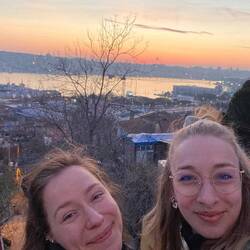 Der Tag begann damit, dass Amanda aus dem Haus rannte um Kaffee zu holen, weil sie wenigstens einmal im Bett Kaffee trinken wollte. Das passierte dann auch, daraufhin war genug Lebensenergie da um sich auf den Weg zum 2. Kaffee zu machen. Als auch dieser gefunden war, machten wir uns auf den Weg auf die Touristen-Zirkus-Seite (inoffizieller Name unserer Seits) um die Cisterna Basilica noch zu besichtigen, die wir gestern einfach nicht mehr geschafft hatten. Nach viel herumirren und etwas Verzweiflung, kamen wir rein. Es war schon beeindruckend diese riesige Halle zu sehen und Steine anzufassen, die die Römer dort hingestellt haben - aber die Luft und der Geruch war eben auch so als wäre es seit den Römern dort. Danach ging es wieder runter zum Meer, weil wir mit der Fähre auf die asiatische Seite fahren wollten. Wir hatten versucht das Bezahlsystem zu verstehen, aber hatten keinen Plan (und auch keinen Bock). Deshalb sind wir einfach in die Touristeninformation gelaufen um es uns erklären zu lassen, ein Mann mittleren Alters fragte uns ob wir aus Deutschland kommen blabla - ja natürlich ist er in Nürnberg aufgewachsen - die Welt ist zu klein. Auf jeden Fall hat er uns wirklich sehr geholfen und Nora freute sich wahnsinnig darauf über den Bosporus zu schippern. Vor der asiatischen Seite wurden wir ausrücklich gewarnt, gerade als Frau sei es dort nicht sicher (sagte der Texaner). Wir weißer als weiß und zur Hälfte blond dachten uns, das wollen wir doch erstmal sehen bevor wir hier irgendwas glauben. Ja, was soll man sagen, der 3. Laden auf der anderen Seite war Tchibo und der 4. Rossmann. Allgemein war es dort architektonisch aber doch anders, etwas chaotischer und enger und wir würden sagen tatsächlich individueller als auf der 'touristischen' Seite, man kam sich teilweise wie in Amsterdam oder Berlin vor. Wir wollten dann aber auch relativ schnell nach Hause und das taten wir auch, in der Nachmittagssonnen ging es durch Galata, wir aßen ein verrücktes aus (mit Schoko-Honig-Sesam-Paste) und fanden dann noch ein Hidden Germ: ein Museum über Konstantinopel. Wir waren sehr begeistert, aber konnten kaum noch stehen. Dann ging es zum Abendessen, mal wieder überragend. Und dann haben wir denn Sonnenuntergang über den Dächern Istanbuls gesehen💫Read more