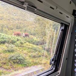 Das Wetter ist weiterhin gruselig. Aber nur fahren macht auch keinen Spaß. Also Faulenzen im Bus. Immerhin kommt ab und zu Besuch vorbei, was Gustav nicht sehen kann. 😁