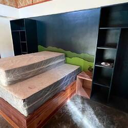 Building furnitures and doors, sanding, painting…