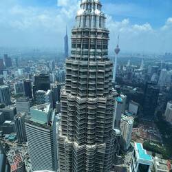 Petronas tower, lunch on top of KL tower in a 360• degrés rotating restaurant for Bruno’s birthday, batu caves, tasty food, roof top swims.