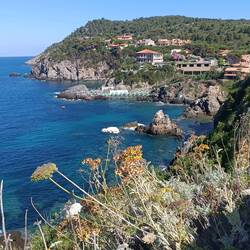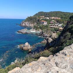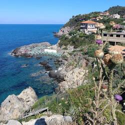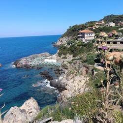 Mattina del primo giorno passeggiata per le vie del paese e lungo il mare, con tuffo dagli scogli