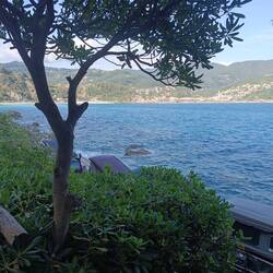 Qualche giorno di relax in questo campeggio a picco sul mare con il costante rumore delle onde in sottofondo