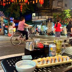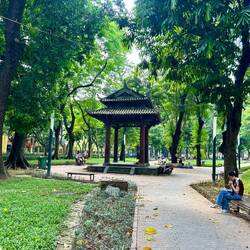 Nach dem Museumsbesuch war mir überraschenderweise nicht nach Egg Coffee, sondern nach etwas Herzhaftem. Ich hatte Lust auf Sushi, also machte ich mich auf die Suche nach einem passenden Restaurant. Dabei umrundete ich ein weiteres Mal den Hoàn-Kiếm-See – inzwischen kenne ich wohl jede Parkbank und jeden Blickwinkel dort.