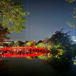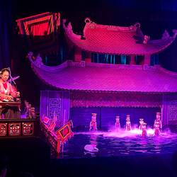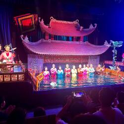 Der Abend endete im Thăng Long Wasserpuppentheater am Hoàn-Kiếm-See. Das Wasserpuppenspiel (Múa rối nước) stammt aus dem 11. Jahrhundert und wurde ursprünglich von Bauern während der Monsunzeit in überfluteten Reisfeldern aufgeführt. Die Puppen werden heute noch über Gestänge von Puppenspielern gesteuert, die bis zur Hüfte im Wasser stehen – unsichtbar hinter einer Bambuswand.