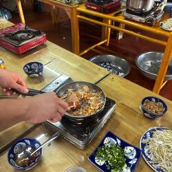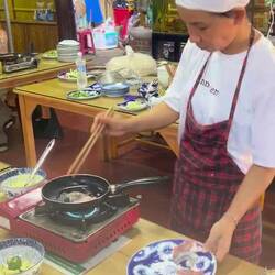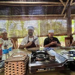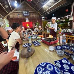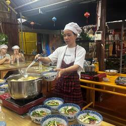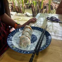 Der Nachmittag wurde dann zum Highlight: Ich nahm an einem vietnamesischen Kochkurs teil. Zuerst ging’s gemeinsam mit der Gruppe auf den Markt, um frische Zutaten einzukaufen – danach wurde gekocht, gelacht und natürlich gegessen. Zum Abschluss fuhren wir mit traditionellen runden Fischerbooten durch den Coconut Forest – ein schöner Mix aus Natur und Kultur. 🚣♂️🌴