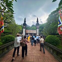 Anschließend besuchten wir Hoa Lư, die erste Hauptstadt des Landes aus dem 10. Jahrhundert. Zwischen den Bergen gelegen, diente sie einst als natürliche Festung. Heute erinnern dort Tempel an die Könige Đinh und Lê – die Gründer der frühen vietnamesischen Dynastien.