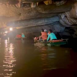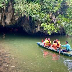 Ich entschied mich für eine besonders abwechslungsreiche Route: beeindruckende Kalksteinfelsen, kleine Tempelanlagen und mehrere Grotten, durch die wir mit dem Boot hindurchglitten. Die Fahrt dauerte rund zwei bis drei Stunden und basierte voll und ganz auf der Muskelkraft unseres Bootsführers – pure Ruhe, nur das rhythmische Klatschen der Ruder im Wasser.