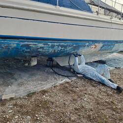Eigentlich wollten wir Dienstag spätestens Mittwoch fertig sein, nun sieht es mal wieder so aus, das wir nixht alrs schaffen, obwohl wir nur 2 Tage Pause gemacht weil es wirklich gar nicht mehr ging. Tja die fehlen uns nach hinten raus. Heute bis auf die Mitte fertig, die ist aber echt hartnäckig, hatten gedacht das ist ja nur ein kleines Stück, das machen wir mal eben, Pustekuchen, das ist echt hartnäckig. Wir denken weil es eben immer mit eingeschmiert wurde alle 2 Jahre mit neuem antifouling, das es sich nicht so runtergefahren hat wie an den ausenrümpfen, den die Mitte ist ja nixht dauerhaft im Wasser, sondern nur bei Seegang, nicht im Hafen oder einer Bucht vor Anker. Also ist es da viel dicker und trockener das der abbeizer gar nicht weit eindringen kann, das macht alles schwerer. Aber morgen müssten wir eigentlich noch den Plotter ausprobieren, das Funkgerät wieder befestigen, alle Maschinen reinigen und verstauen, den Klebestreifen entfernen, Müll entsorgen, Dinghi wieder unter das Boot, Räder unter dem Boot anketten, und die Liste wird immer länger je mehr ich drüber nachdenke, das ist für einen Tag schon viel. Und jetzt wird es noch interessant, die Wetterprognose für die Heimfaht, sieht mal richtig mies aus, Schnee auf gefrorene Straßen, denn Freitag Nacht haben sie Blitzeis angesagt. Und den ganzen Tag Schnee. Welche Freude...