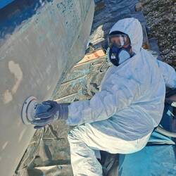 So der angekündigte Schnee ist da, einen Tag später es bringt kalten Wind mit. Echt unangenehm, sogar unter dem Boot, die Füße Frieren ein, weil man nur mit dem Oberkörper arbeitet. Mittlerweile haben wir 3 Pakete 40ger Schleifpapier weg geschliffen und sind noch lange nicht fertig, damit haben wir nicht gerechnet, jetzt muss es mit 60 und 80 weiter gehen. Dauert nur länger. Aber ein Ende ist in Sicht, auch wenn die Motivation langsam sinkt und die Kräfte schon lange.