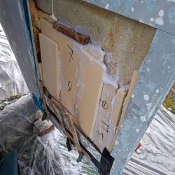 Also just in time wirklich fertig geschliffen, alles fertig, alles verstaut und gereinigt. Die blauen Sachen im Müllsack zum waschen im Auto, mal sehen ob da etwas zu retten ist. Ich mache morgen nochmal Bilder wie es jetzt aussieht und dann geht es im Schneegestöber nach Hause.