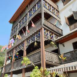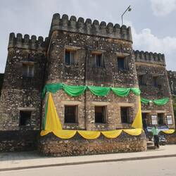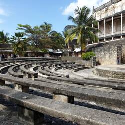 We checked in at the Safari Lodge Hotel in one of the warren of small backstreets that make up Stonetown. The hotel had an Arabic feel to it. Our local guide, Patrick, showed us around the town in the port area where there is an old fort built in the 1700s by invading Omani Arabs. He showed us where the food night market happens and the 'House of Wonders' where the first electric lighting in the whole of East Africa was installed by the sultan, We then had lunch in an Indian restaurant and then did some exploring. We visited the fort which has now been turned into an area for selling arts and crafts. It has an outdoor theatre. The tourist information centre is also situated in the entrance and the helpful member of staff told us about the ornate doors carved in wood without hinges and with metal domed spikes in the door. He explained that these were Indian style doors and the spikes would keep the elephants out in Imdia. There are also Arabic style carved doors in Zanzibar. We also visited the local music school who were putting on a concert of traditional Zanzibar music that evening. We then returned to the hotel to rest and get some respite from the intense heat of the Zanzibar sun. Stonetown is definitely a town of faded past glories, with the exception of the old fort, its buildings are in a very dilapidated state and the town is clearly very poor. I was perhaps expecting the legendary Stonetown of hundreds of years ago rather than the town of today.