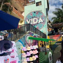 D Busfahrt vo Salento bis Medellin ohne Klimaalage und mit sehr vielen Warteziite wege Baustelle hend mir zum Glück hinter üs. 🥵🥵Mir erkundet d Stadt, die viele bunte Graffitis und mached eLæs mere