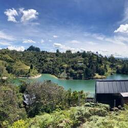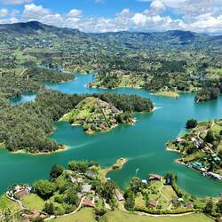 Vo Medellin gohts wiiter uf Guatape. Mir werded mitem Boot abgholt und i üsere mega Unterkunft abglade. Mir gnüssed do d Ussicht über de See, kletteret ufen Ussichtspunkt und entspanned i de Sunne.☀️😍