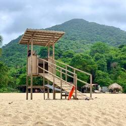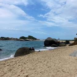 Mir verabschiedet üs vo Palomino und es goht wiiter is chline Fischerdörfli Taganga. Ufem Weg dött hii bsueched mir de Tayrona-Nationalpark. Mir mached e Wanderig bi 30 Grad und hocherLæs mere