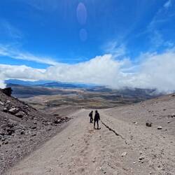 Mir verbringed en wunderschöne Tag im Nationalpark und wandered uf fast 5000 Meter bis zum Gletscher vom Cotopaxi. De Vulkan isch aktiv und es hett viel Spure vo de Äsche. D Ussicht isch WahnsinnLæs mere