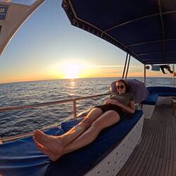 Und los gohts für ei Wuche ufs Tauchschiff. Noch de erste zwei Tauchgäng gohts los öppe 18 Stund bis zu de Insle Wolf. Mit 4 Tauchgäng am Tag simmer guet beschäftigst. Ussert esse und schlofeLæs mere