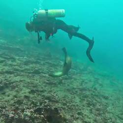 Mir chönd de Iguanas im Meer bim Fresse zueluege, sind echt lustig die Tier. A de Oberfäche hetts no chlini Galapagospinguin wo leider nöd abe chömed. Und überall die herzige Seelöwe wo megaLæs mere