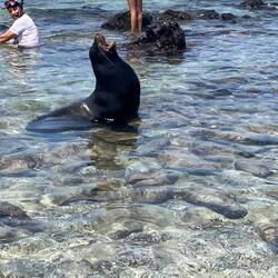 Mir chömed uf Santa Cruz ah und erkundet d Insle. Es hett am Strosserand schlofendi Seelöwe, Iguanas am Strand und sogar im Wasser am schwimme.😆 Bim Schnorchle gsehnd mir scho die erste Hai. SehrLæs mere