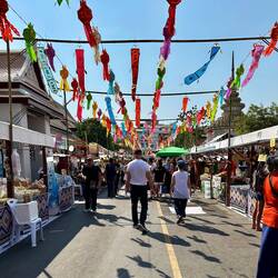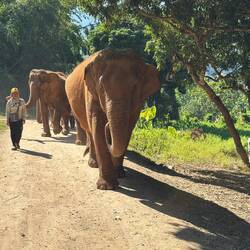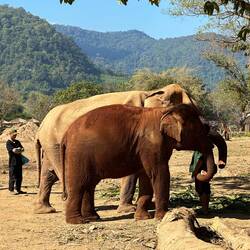 We arrived in Chiang Mai yesterday and immediately loved it. Can’t really tell you why-just a good vibe. Apparently we aren’t alone. There are lots of foreigners here, especially young, hip hostel types. We went to a crazy night market last night and ate more good food (no bugs that I’m aware of) then today visited an elephant sanctuary that is also home to many rescued dogs, cats, water buffalo, etc. We researched a bit to make sure we found an ethical rescue, as some aren’t. It was very cool to see these majestic animals up close, but so sad to see their evidence of years of hard labor and abuse. The elephants can’t be rescued until owners are willing to sell them-which means once they are injured or become too old to work. Many come from Myanmar. It was evident how much the workers love these elephants and know them each by name, and it felt like we got to know the animals and their stories a bit as well.Læs mere