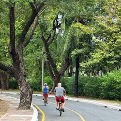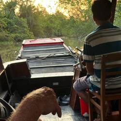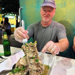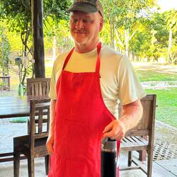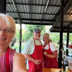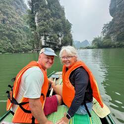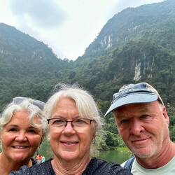 Today was a fantastic day! We left Ho Chi Minh City early and headed out of town for the 1st day of our 3 day bike tour of the Mekong Delta. We have our own tour guide, and he’s so great. We meandered through backroads, some not much more than a concrete barrier for a waterway and not much wider than the bike (a little nerve-wracking) , some roads unpaved, and all places we would have not seen had we been traveling in a vehicle. The area was so much more beautiful than I expected. As Bryan said, it was as if we were pedaling through a botanical garden all day. David (his English name), our guide, frequently stopped at interesting places and explained some item of interest or factoid about Vietnamese culture. We saw lots of different fruits. In fact, someone harvesting coconut by the side of the road insisted on opening coconuts so we could have coconut water fresh from the fruit. We saw rice paper being made, rice being popped, had the best soup of my life (not pho-something else) at a little hole in the wall sort of place-I even drank snake wine-oh yes I did! We capped the day off with a boat ride through the Mekong to our “homestay” where we had a little cooking lesson and ate more great food. Tomorrow the bike adventure continues…Læs mere
